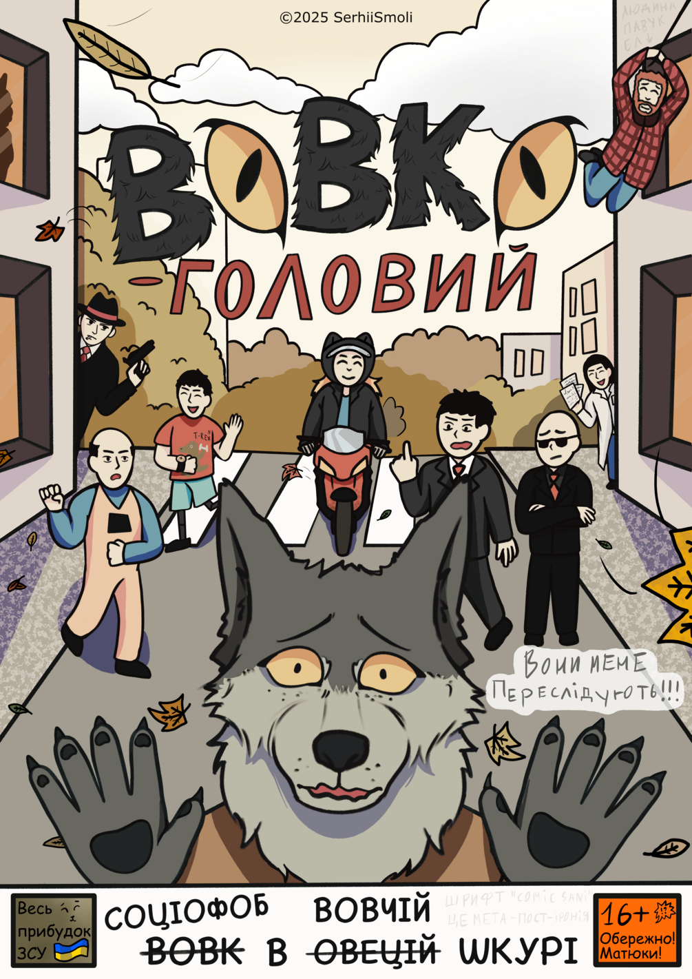 Смолі, студент з соціофобією який був вимушений переїхати в нове місто від війни, раптово на перше вересня стає напів-вовком "Вовко-головим" більшість через стереотипне мислення вважає що він ПЕРЕВЕРТЕНЬ! І по-різному реагують, але найстрашніше для Смолі це те що на нього тепер всі дивляться! А всі думки "Я не такий?!" стають дійсністю. Ця історія про боротьбу з соціофобією автора./Smoli, a student with social anxiety who was forced to move to a new city because of the war, suddenly becomes a half-wolf named “Wolf Head” on September 1st. Most people, due to stereotypical thinking, believe that he is a WEREWOLF! People react differently, but the scariest thing for Smoli is that now everyone is looking at him! And all his thoughts of “Am I not like that?!” become reality. This story is about the author's struggle with social anxiety.