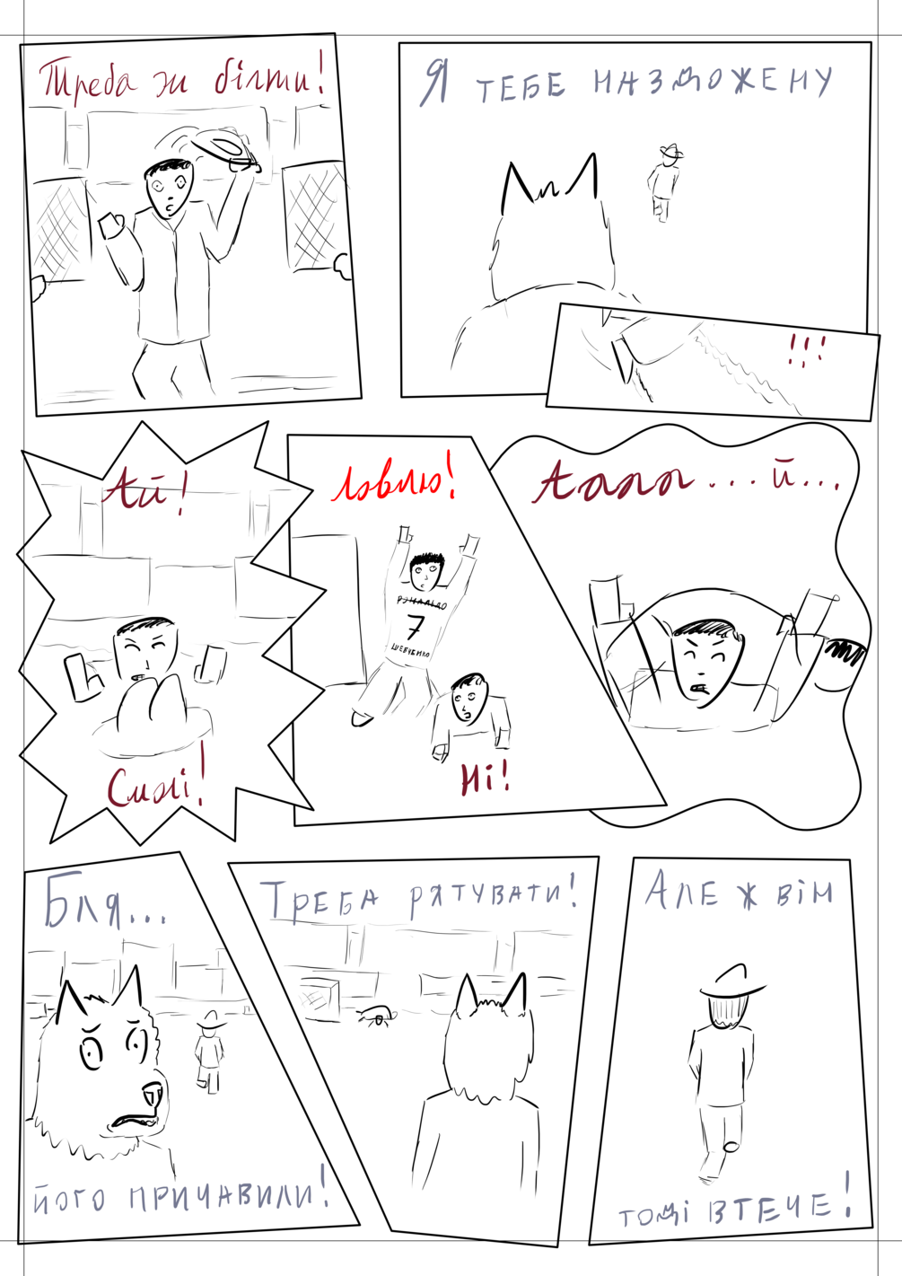 Перш за все, це сюжет. Я його написав на заводі в розриві з роботою, а в дома досліджував сценарні прийоми в інтернеті. І за літо я зміг написати свій перший здоровезний сюжет на 220 ст. Чи це погано? І так і ні. Бо краще б я зробив 11 міні-коміксів. Я тоді б зрозумів краще як робиться комікси. Втім я намагався максимально насичити комікс гумором, відсиланням і своїми історіями. А їх чи мало в цьому коміксі. Головна проблема цього коміксі його не завершеність в тому вигляді, в якому я мріяв. Бо нажаль хороша мальовка дорого коштує і окупається рідко((( І так тут починається мій художній досвід, всю осінь я робив фізичні розкадровки, всю зиму Альфа версію, а ось Бета версію я так повністю і не завершив( Втім це комікс про історію, тож я бажаю гарно насолодитися нею в моєму коміксі!